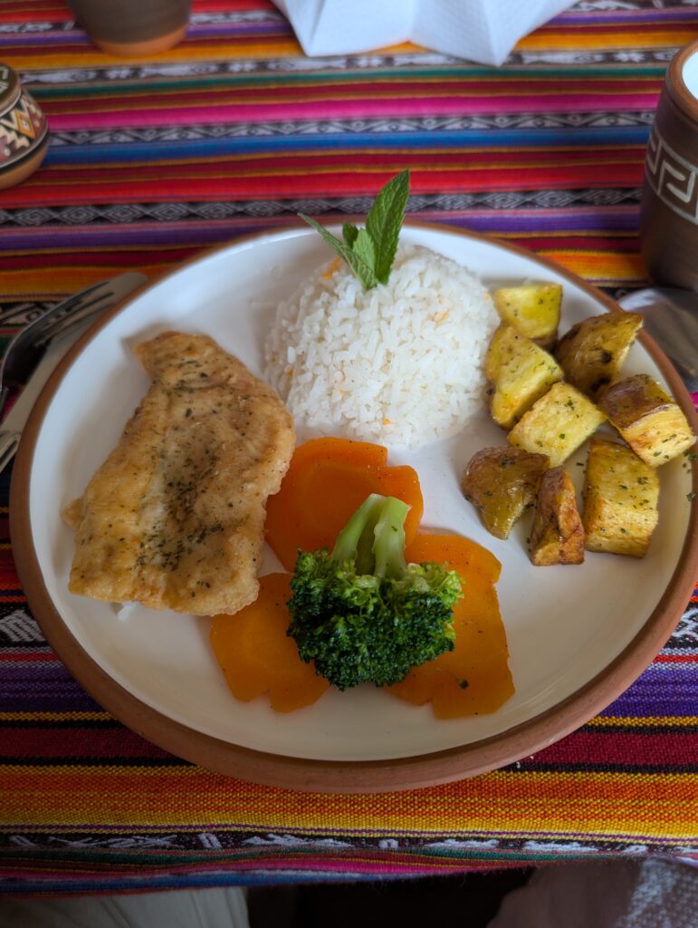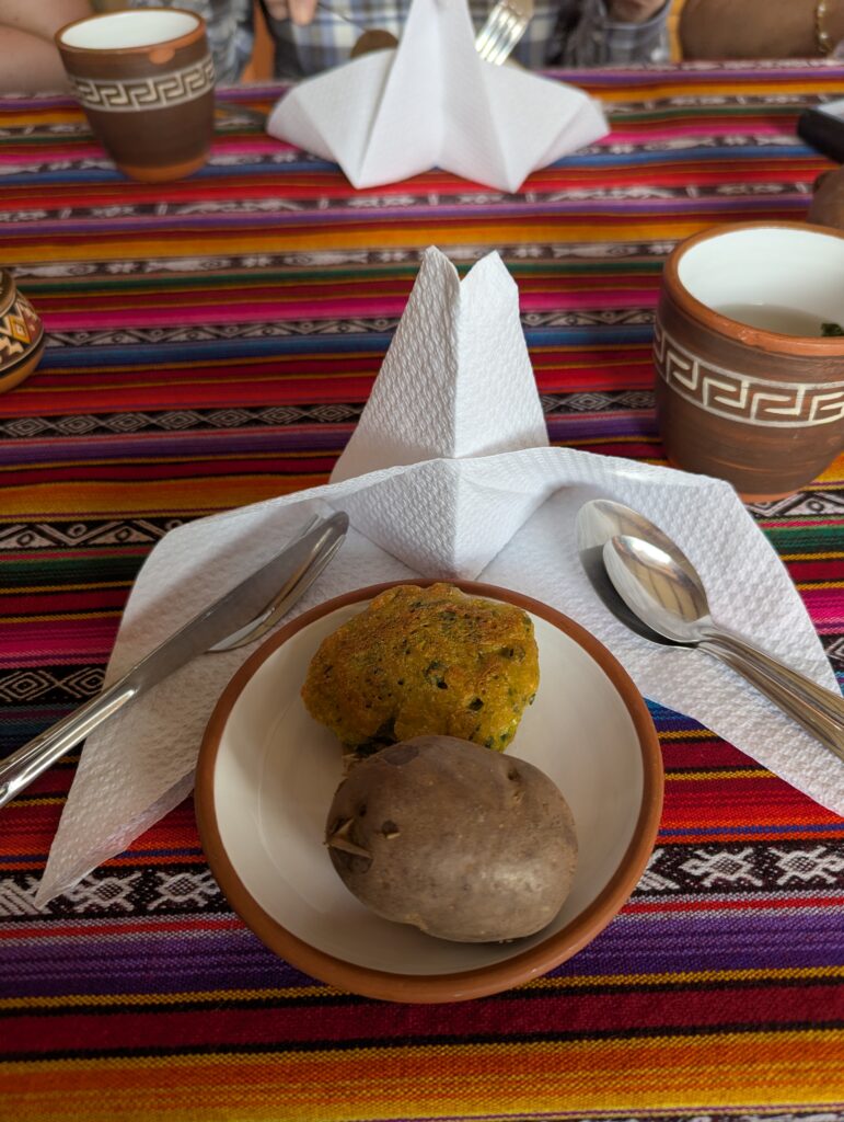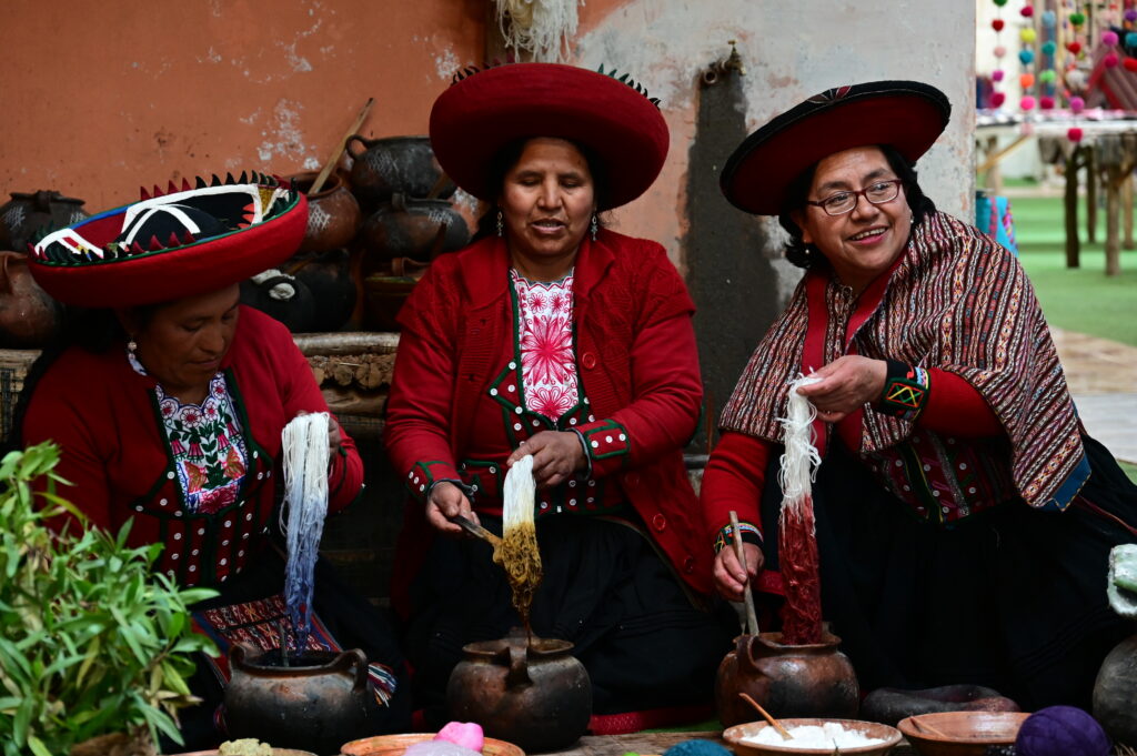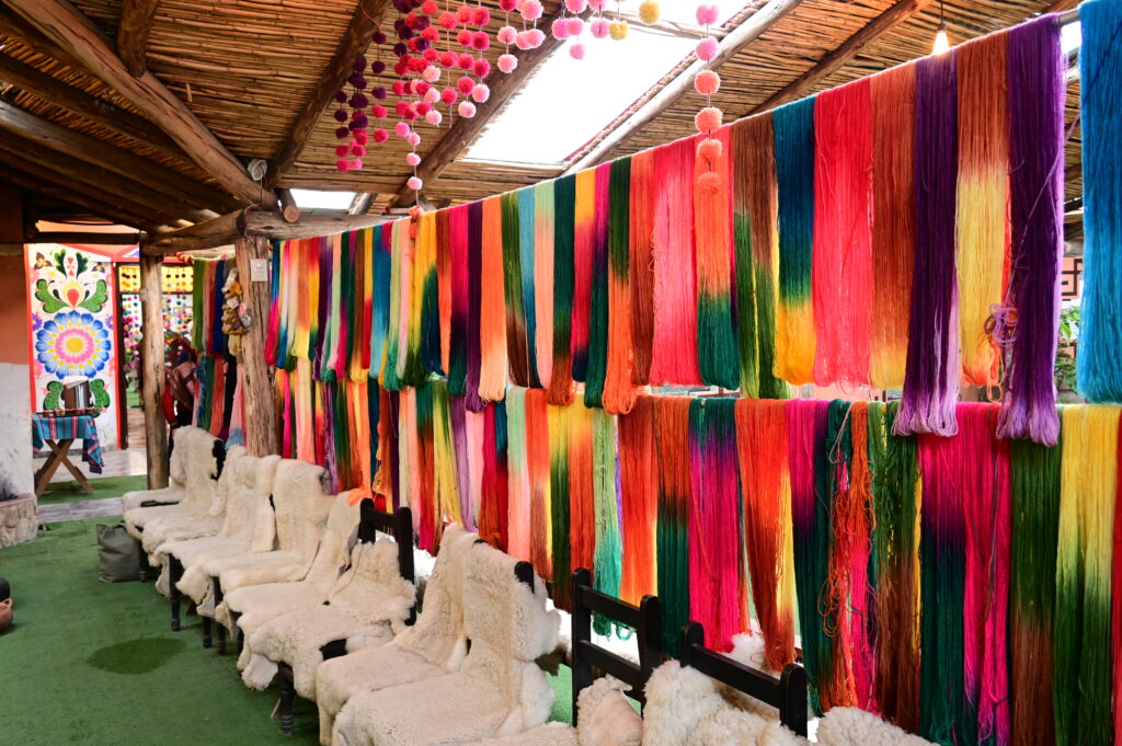 Dagens runde i den hellige dalen ble avsluttet i Chinchero. Her er det en håndverksbedrift der de spinner, farger, strikker og syr alle slags plagg basert på ull fra alpacca. Vi fikk se prosessen hvordan de farger ulla i alle slags farger, vever den og selvsagt gode muligheter til å kjøpe med seg varer hjem.