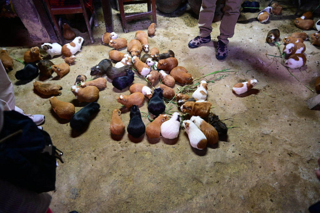 De har marsvin som husdyr. Marsvin ser de på som en delikatesse, som gjerne blir servert ved store anledninger, bursdager og sånt. Det krydde av marsvin der inne…