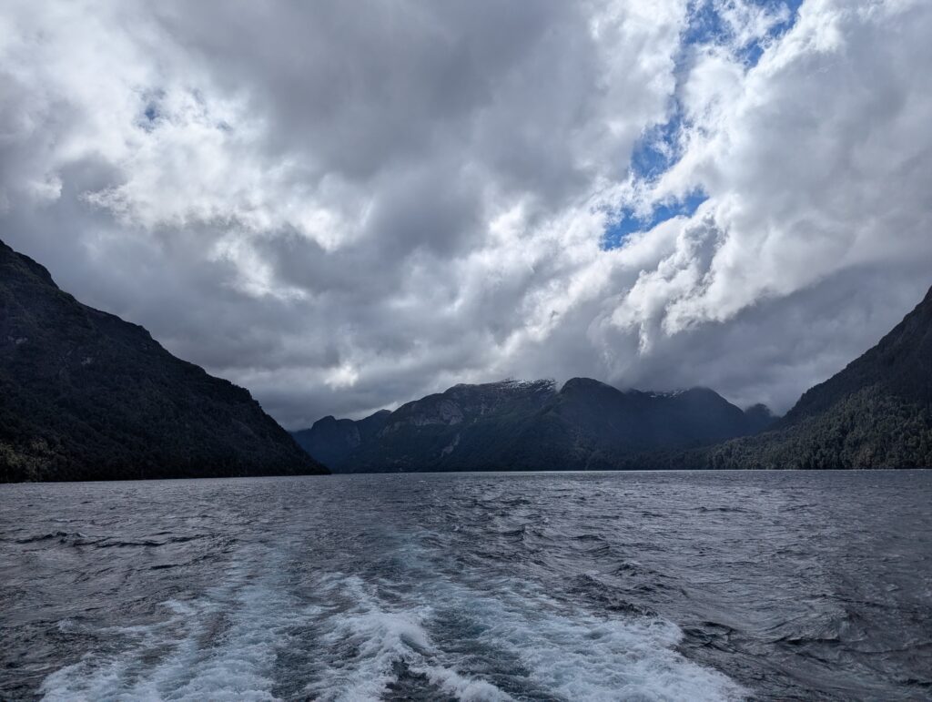 Vel nede ved nærmeste lille innsjø har Argentina grensestasjon, så da ble det nytt stempel i passet før vi gikk ombord i båt nr. 2. Det ble en kort båttur, så et kvarter etterpå var det igjen tid for å klatre ombord i dagens 3. buss som i løpet av 20 minutter tok oss til Puerto Blest i vestenden av Lago Nahuel Huapi. Nå begynte endelig solen å titte fram, så humøret steg og kameraene kom fram igjen.